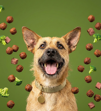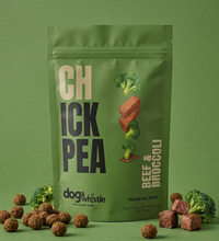 Beef and broccoli isn't just for takeout night anymore — your pup wants in. Our Beef & Broccoli Chickpeas are bite-sized training nibs made with real beef, nutrient-rich broccoli, and fiber-packed upcycled chickpeas. Slowly dehydrated for a satisfying crunch and loaded with protein, vitamins, and natural goodness your dog can taste. No artificial anything, no fillers, no shortcuts — just clean, crunchy little nibs that'll have your pup sitting, shaking, and rolling over on command.